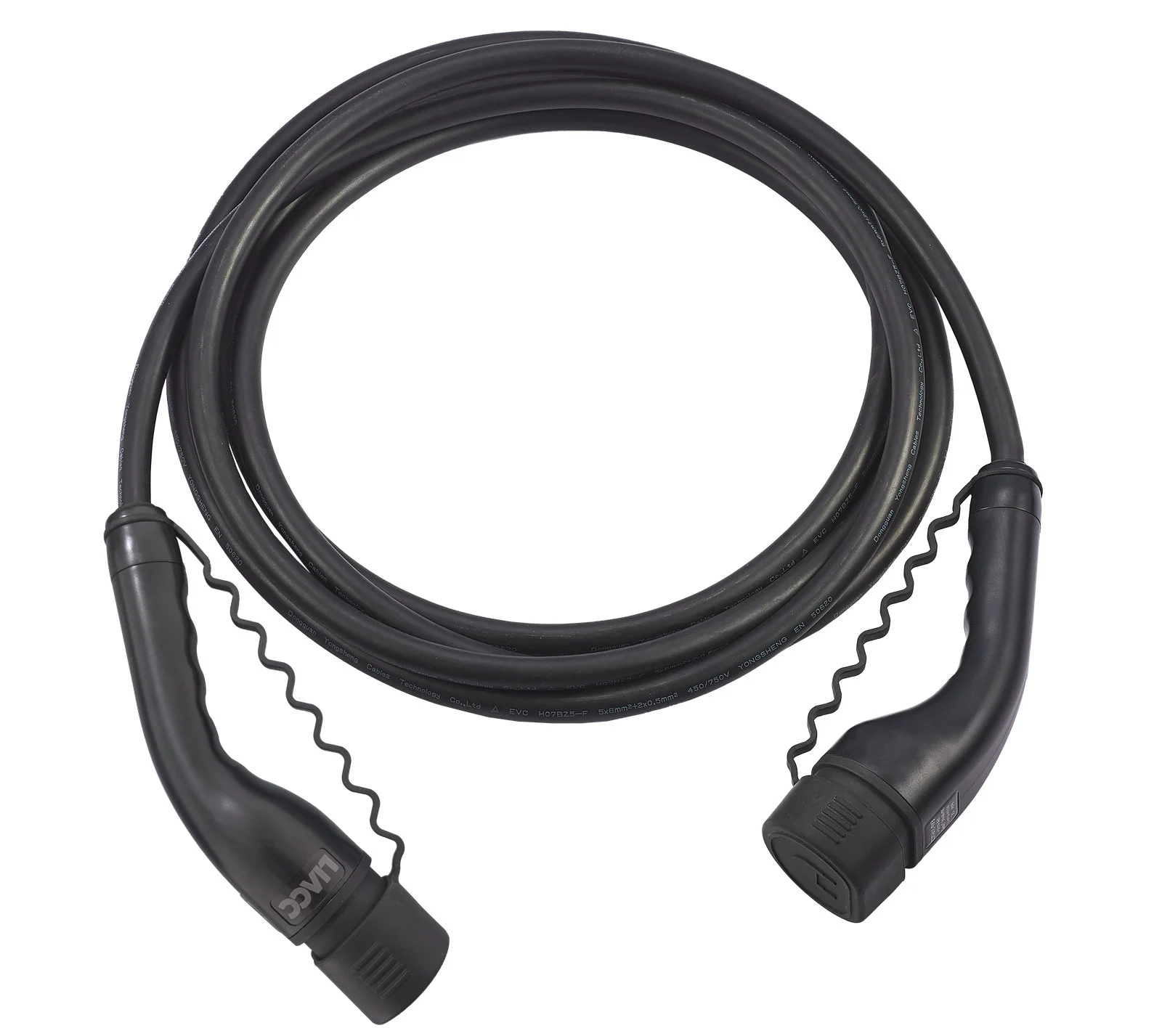 LIACC AC Type 2 to Type 2 EV Charging Cable has one type 2 plug to the charging station, and another type 2 connector to the electric vehicle.
